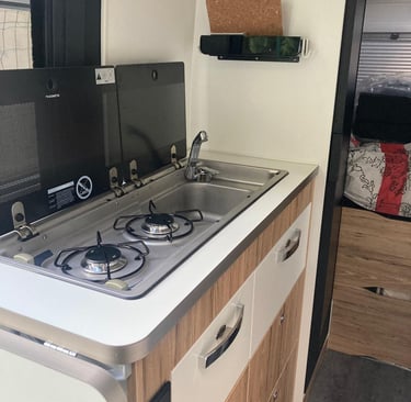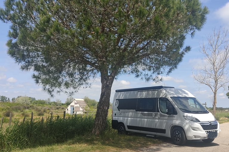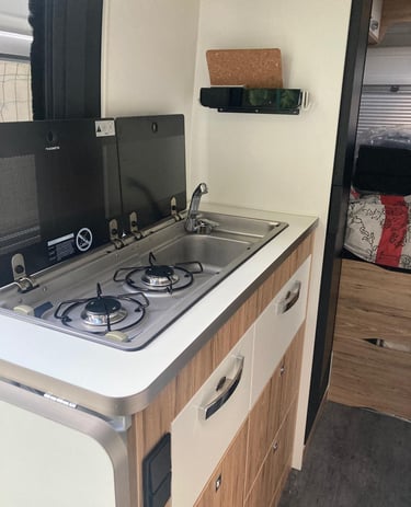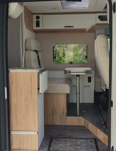 Tout est équipé pour que vous ameniez vos valises et partez sur les routes directement : baissées, kit vaisselle, cafetière, table, chaises extérieures, bonbonne de gaz... Le confort est exceptionnel. Entre le lit de 135 cm, la douche/toilette intérieur et l'espace salon spacieux, vous pouvez profiter du van en toute météo.