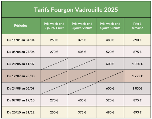 Tarif tout équipé avec assurance, prêt pour l'Aventure 👌pour une durée d'une semaine minimum